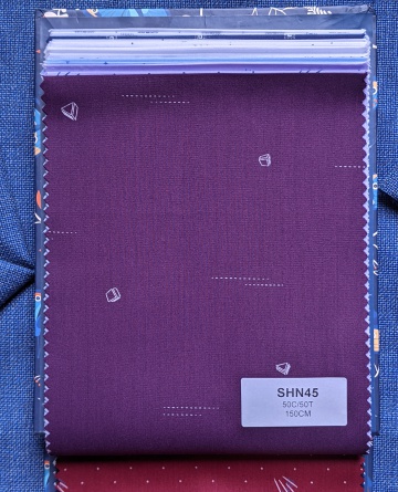 Vải cotton chống nhăn họa tiết màu tím đậm SHN45