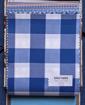 Vải cotton 100% kẻ caro màu xanh dương SNO1M87