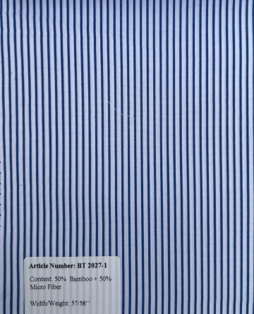 Vải sợi tre thoáng mát kẻ sọc dọc màu xanh BT30021