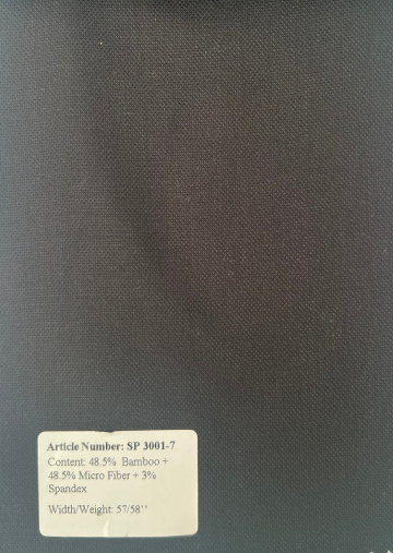 Được dệt nên từ thành phần là 48.5% Bamboo và 48.5% Microfiber và 3% Spandex co giãn phù hợp.